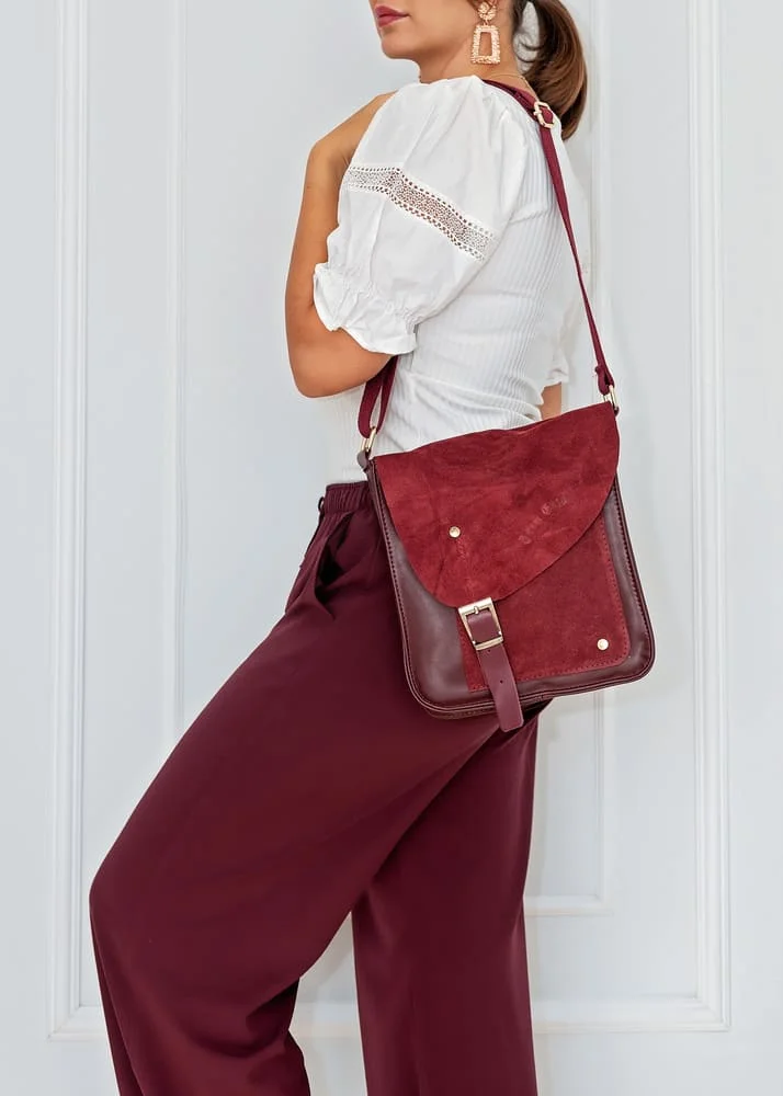 Torebka Andora Bordo wyróżnia się ponadczasową elegancją, dzięki miękkiej klapce wykonanej z zamszu w kolorze bordowym. Ten klasyczny odcień brązu doskonale wpisuje się w najnowsze trendy mody, jednocześnie pasując do wielu stylizacji – zarówno tych na co dzień, jak i na wyjątkowe okazje. Ozdobne detale, takie jak łańcuszek i złote elementy, nadają torebce luksusowego charakteru, przyciągając wzrok i podkreślając Twoje wyczucie stylu.