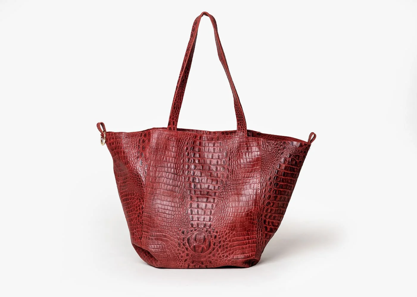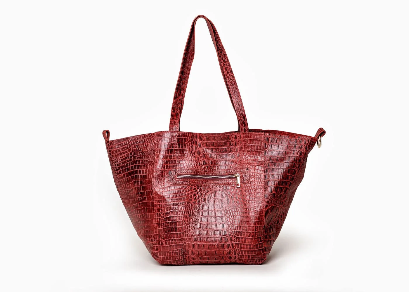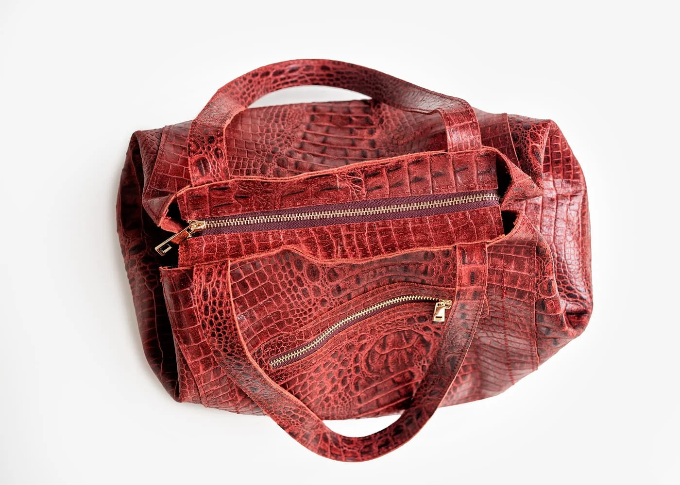 Torebka Allure została stworzona z myślą o kobietach, które cenią sobie nie tylko styl, ale także trwałość. Wykonana z prawdziwej skóry o tłoczeniu na wzór krokodyla, przyciąga wzrok eleganckim, bordowym odcieniem. Skóra krokodyla to symbol luksusu i wyrafinowania, dzięki czemu torebka Allure doskonale wpisuje się w najnowsze trendy mody.