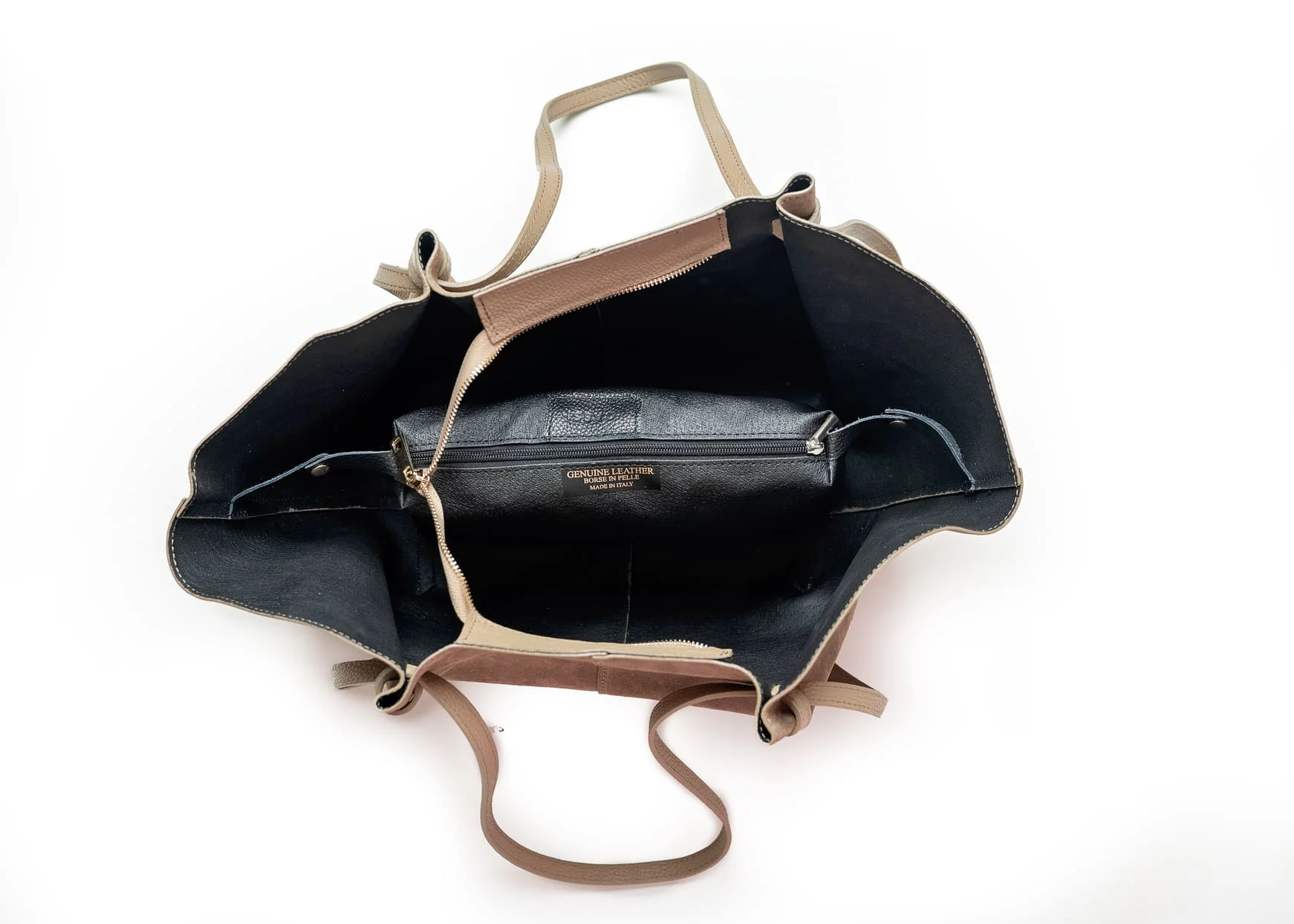 Torebka ma długie uchwyty, dzięki którym wygodnie nosisz ją na ramieniu. W środku znajduje się odpinana kosmetyczka na suwak – idealna na drobiazgi lub do przenoszenia oddzielnie.