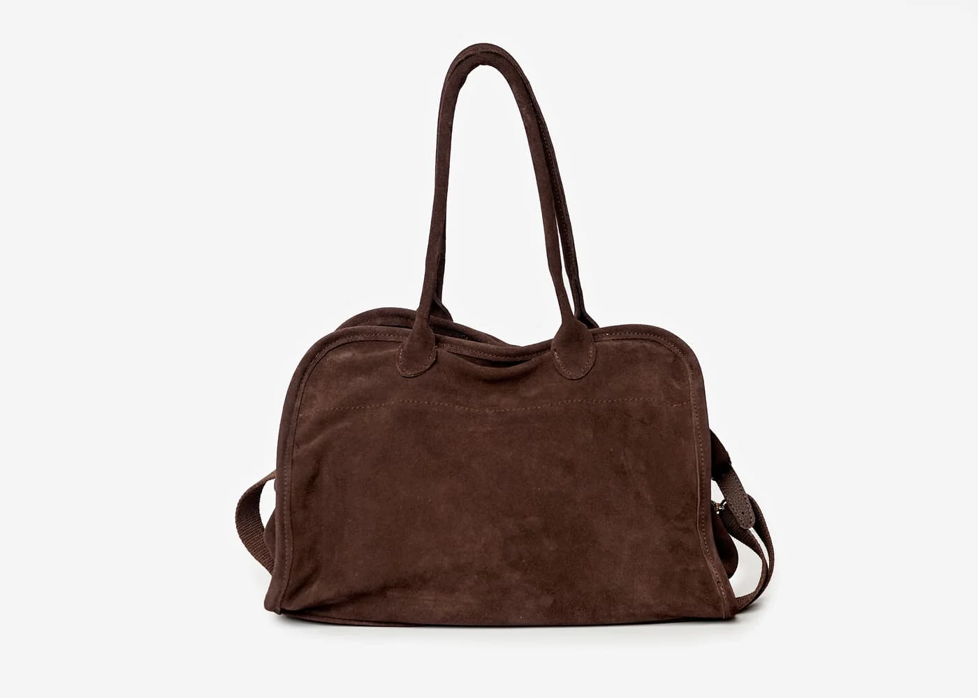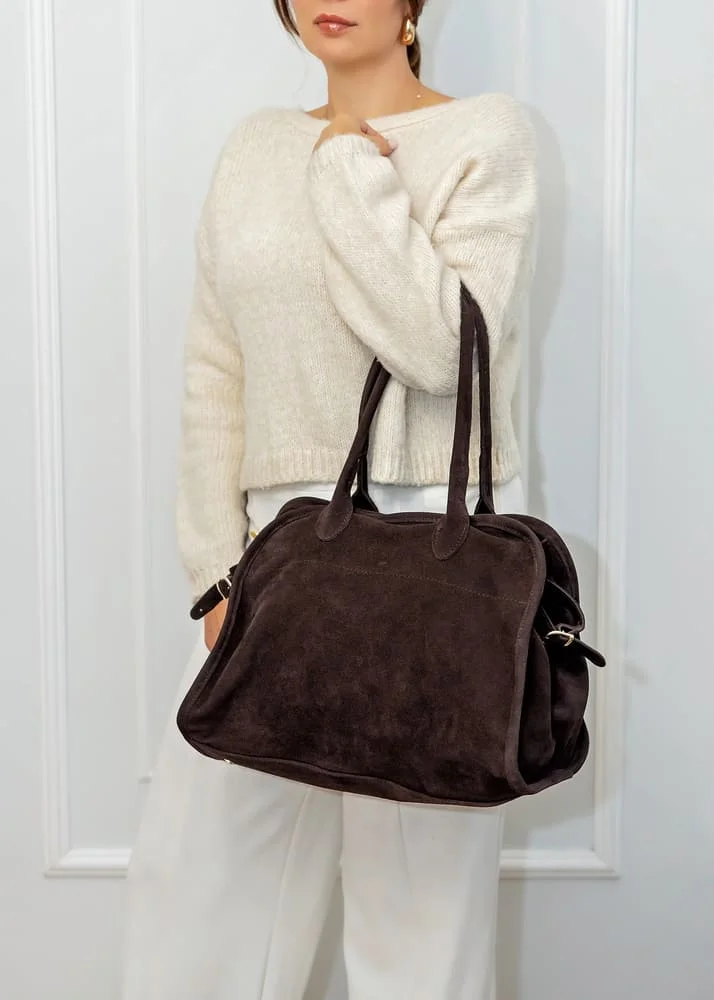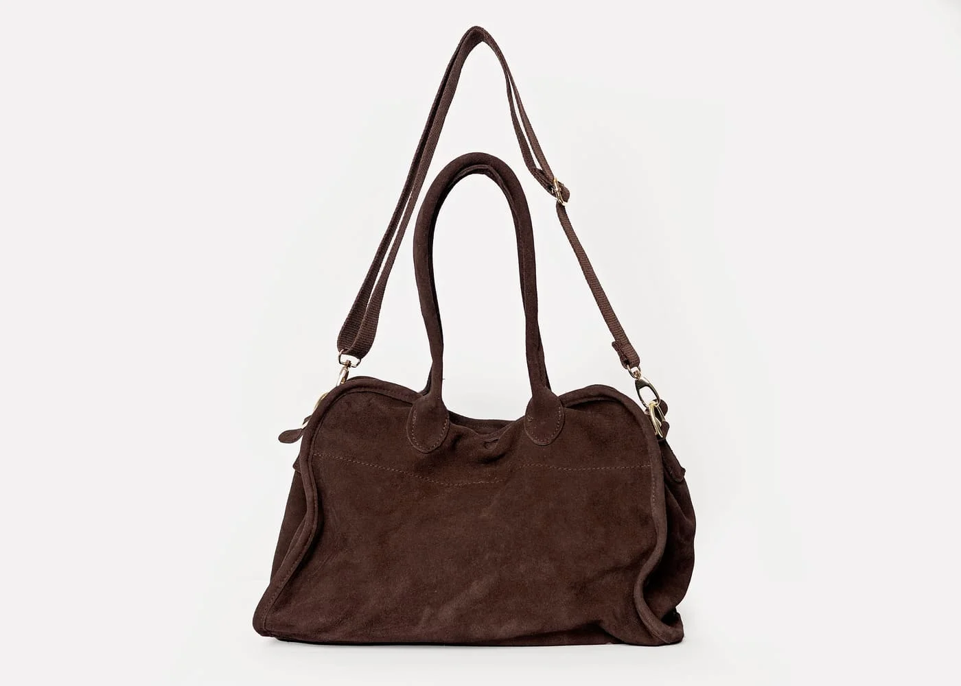 Modny Zamszowy Kuferek Terra w Kolorze Czekoladowego Brązu